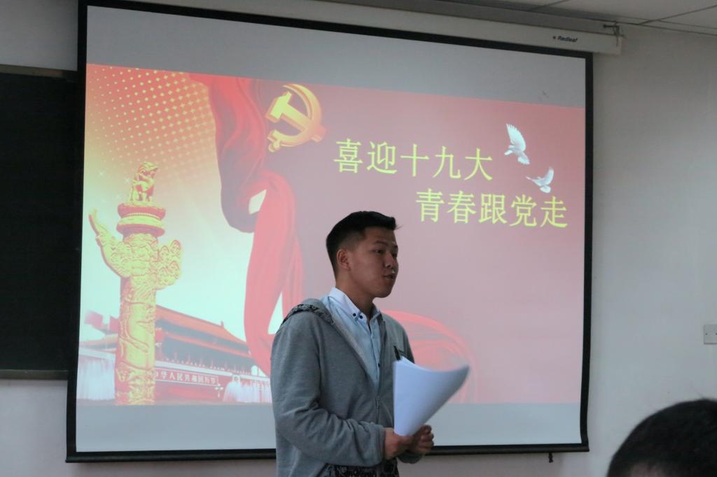 会议伊始,与会党员对近期的学习情况做了详细的汇报总结,以专业小组进行展示和学习心得分享与交流。同学们结合自身情况学习了《习近平七年知青岁月》、《习近平讲故事》,分享习近平总书记艰苦奋斗精神意志、心系人民的家国情怀。“其实绿色早已蔓延到我们身边,河南大学设立的PM2.5的捕捉检测站、曾宪梓楼楼顶安装的太阳能电板,学校这一系列细小的变化都激荡着我作为环科学子的心。”环境科学硕士研究生小组以生活中的小事情为例让我们感受到十八大以来国家对于环境保护的重视;人文地理小组带领大家观看了《辉煌中国》短片节选,让我们深刻体会到:扶贫攻坚的任务艰巨而重大,但中国的辉煌就是由这悬崖上的小路、人们的笑脸一点点铸就的!