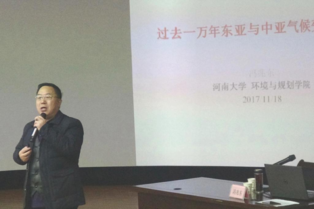 省地理学会副理事长张久铭教授主持了大会主题报告。中科院科管所研究员、华东师大特聘教授、知名学者王铮教授以“区域的地理本性和发展依托”为题,系统讲解了区域发展的地理问题,并提出创新区域发展的新见解。长江学者、国家杰青、河南大学特聘教授冯兆东教授以“过去一万年东亚与中亚气候变化研究”为题,全面探讨了东亚与中亚气候变化与全球变化的相互关系及其过程、影响因素等,丰富的图表、生动的语言吸引了听众。
