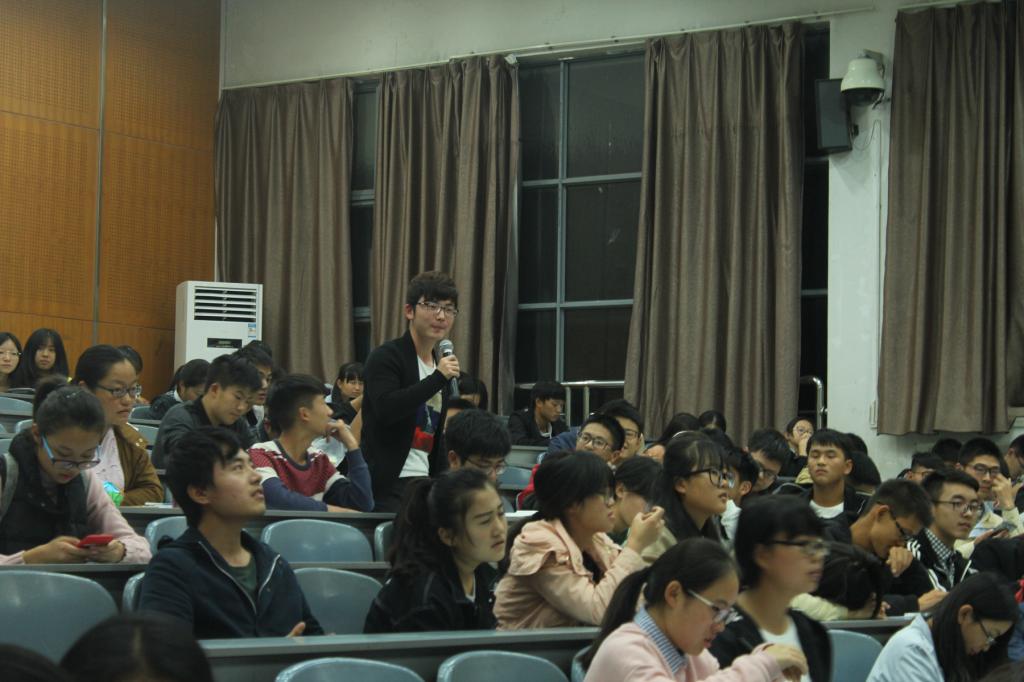 伴随着《远走高飞》、《平凡之路》等曲目,交流会正式拉开帷幕。首先,李喆对到场的往届优秀学生代表表示诚挚的欢迎和衷心的感谢,并对学院历史沿革、人才培养、师资力量等方面做了介绍。紧接着,优秀学生代表以演讲的形式依次发言,通过讲述自身的学习、生活经历为新生传授经验,建议2017级同学对自己大学四年要有一个明确的规划,正确处理好学习、生活、感情之间的关系,放手逐梦。李喆在介绍往届地理科学展示大赛获奖时,14级学生代表张茜、韩昌序也向同学们讲述了他们对比赛的认识,分享了自己参赛的收获,鼓励同学积极参与。最后,现场展开了激烈的地理知识有奖竞答,同学们踊跃参与,氛围热烈。