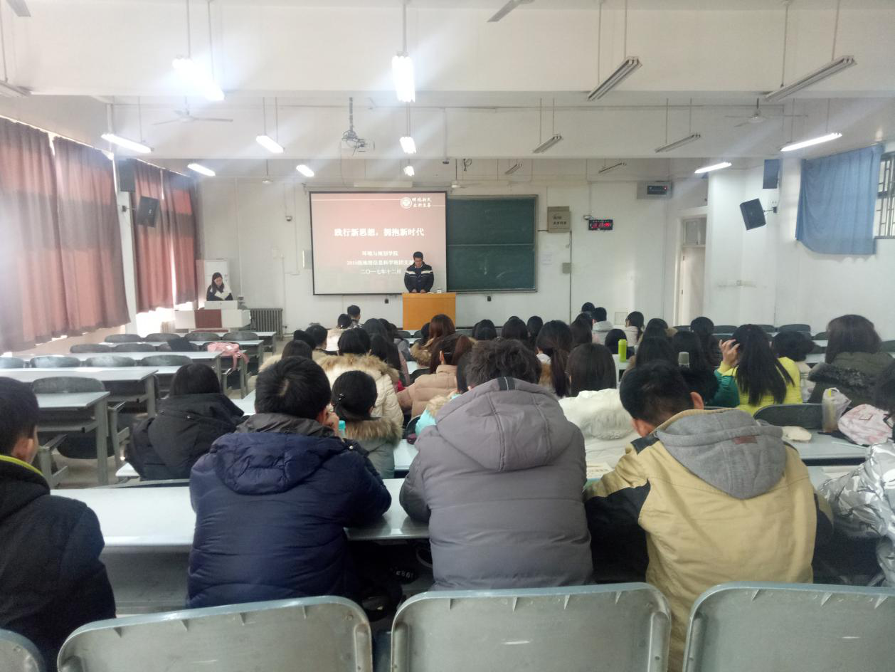 2017年12月21日,bet28365游戏2015级地信班“践行新思想·拥抱新时代”组织生活会在金明综合楼2201教室成功举行。2015级辅导员韩晓静出席本次活动。活动由团支书李倩楠主持。